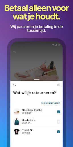 Shop op jouw manier en betaal wanneer het jou uitkomt: nu, later of in termijnen. Krijg een volledig overzicht van al je aankopen en betaal eenvoudig via de app. Om het je makkelijk te maken kun je nu één aanbetaling eerder voldoen.