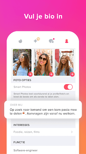Met 30 miljard potentiële matches om mee te daten, verbindt Tinder® meer mensen dan welke app dan ook. We zijn jouw rechterhand waar je op kunt vertrouwen - waar jij ook bent, wij zullen er ook zijn. Misschien wil je wel nieuwe mensen ontmoeten, je sociale kring uitbreiden, locals ontmoeten terwijl je op reis bent of gewoon in het hier en nu leven; je bent in ieder geval op de juiste plek beland. We worden niet zomaar "'s Werelds heetste app" genoemd; wij zorgen voor meer dan 26 miljoen matches per dag. Hoeveel datingapps kunnen dat nu zeggen?